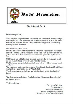 No. 84. april 2016 (2016 no. 1) De Ross Newsletter is in het vervolg beschikbaar als PDF-bestand.